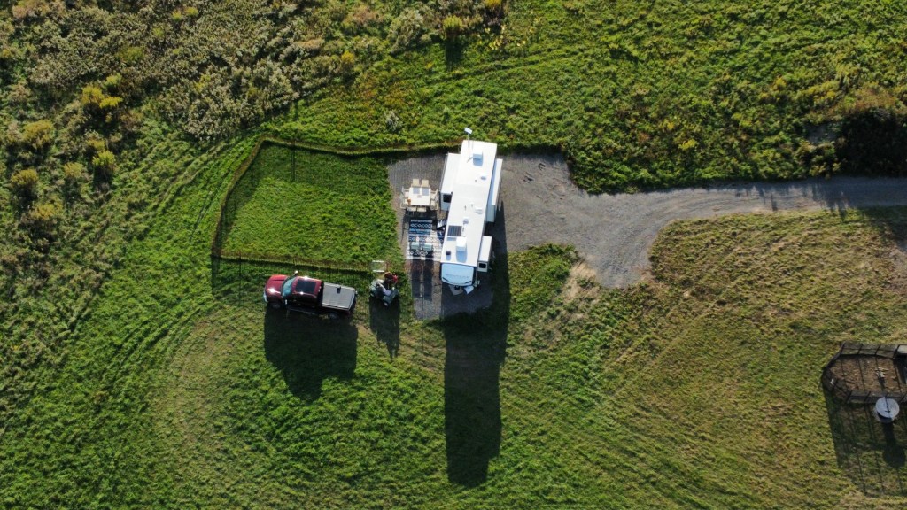 Here are photos and videos of the RV site that can be used as a Work Camping site for our summer volunteer work campers or may be available for a Hip Camp RV site. The RV site is in our alpaca pasture. Please see our information below if you are interested in our Work Camp site or to Camp on our land.