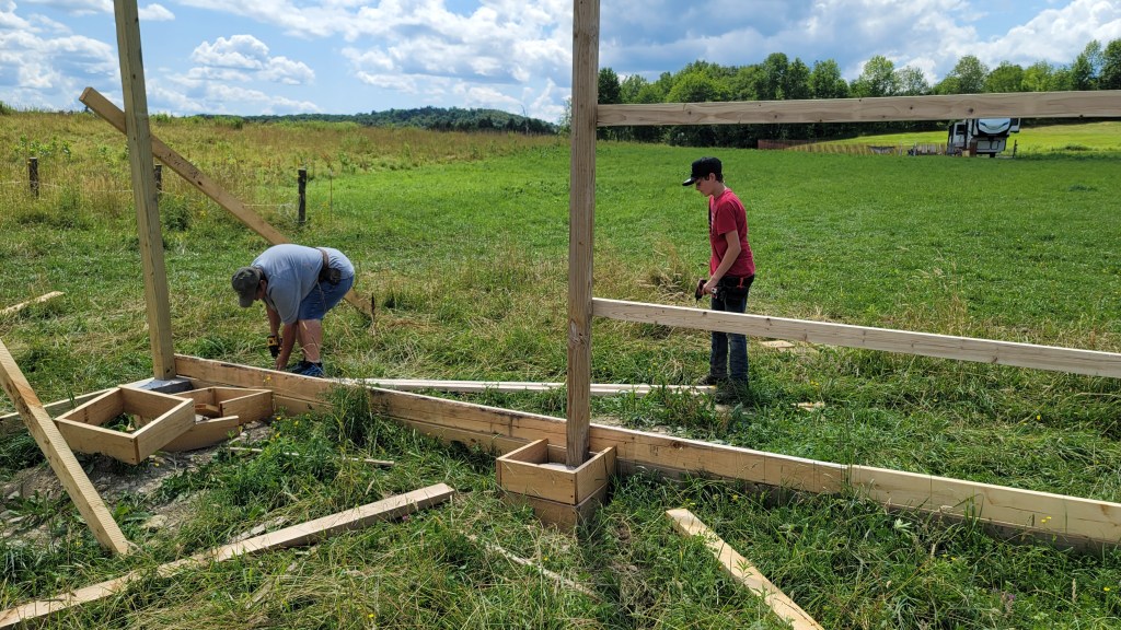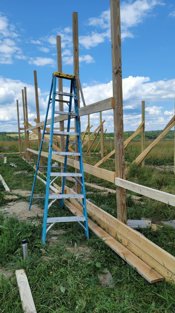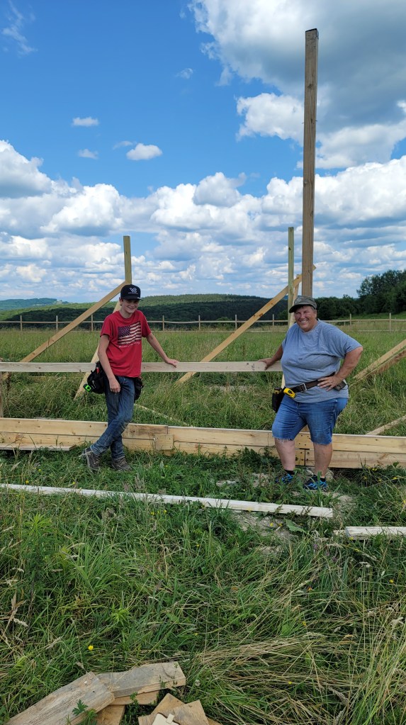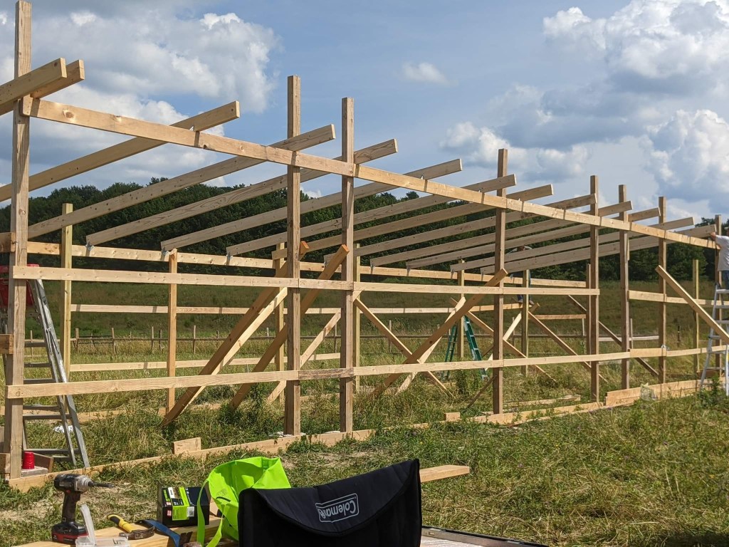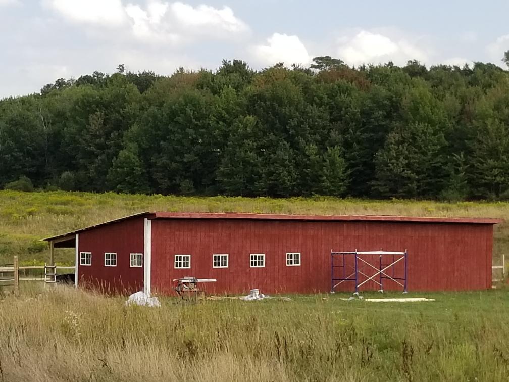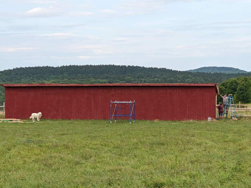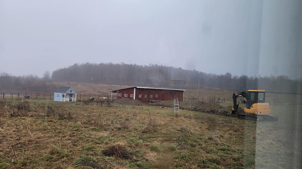 We spent most of Spring to Autumn of 2022 building the barn and fencing in the fields where the alpaca and horses live. Over the winter, we brought water and electricity to those barns. The future plans include extending that existing structure with more horse stalls and a riding arena. Check out the photos below to watch the progress.